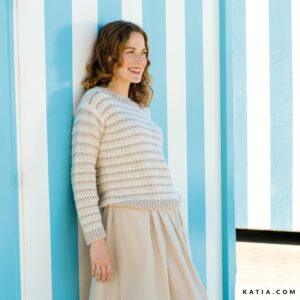 Comfortabel en fris, het hele jaar door: dit gehaakte truitje toont kleur- en textuurstrepen die beweging geven. Rechte lijnen creëren een relaxte stijl die makkelijk combineert. Concept Puro Cotone biedt het comfort van katoen en een natuurlijke valling. Te vinden in All Seasons 7. Haak in je eigen tempo en draag je handgemaakte trui.