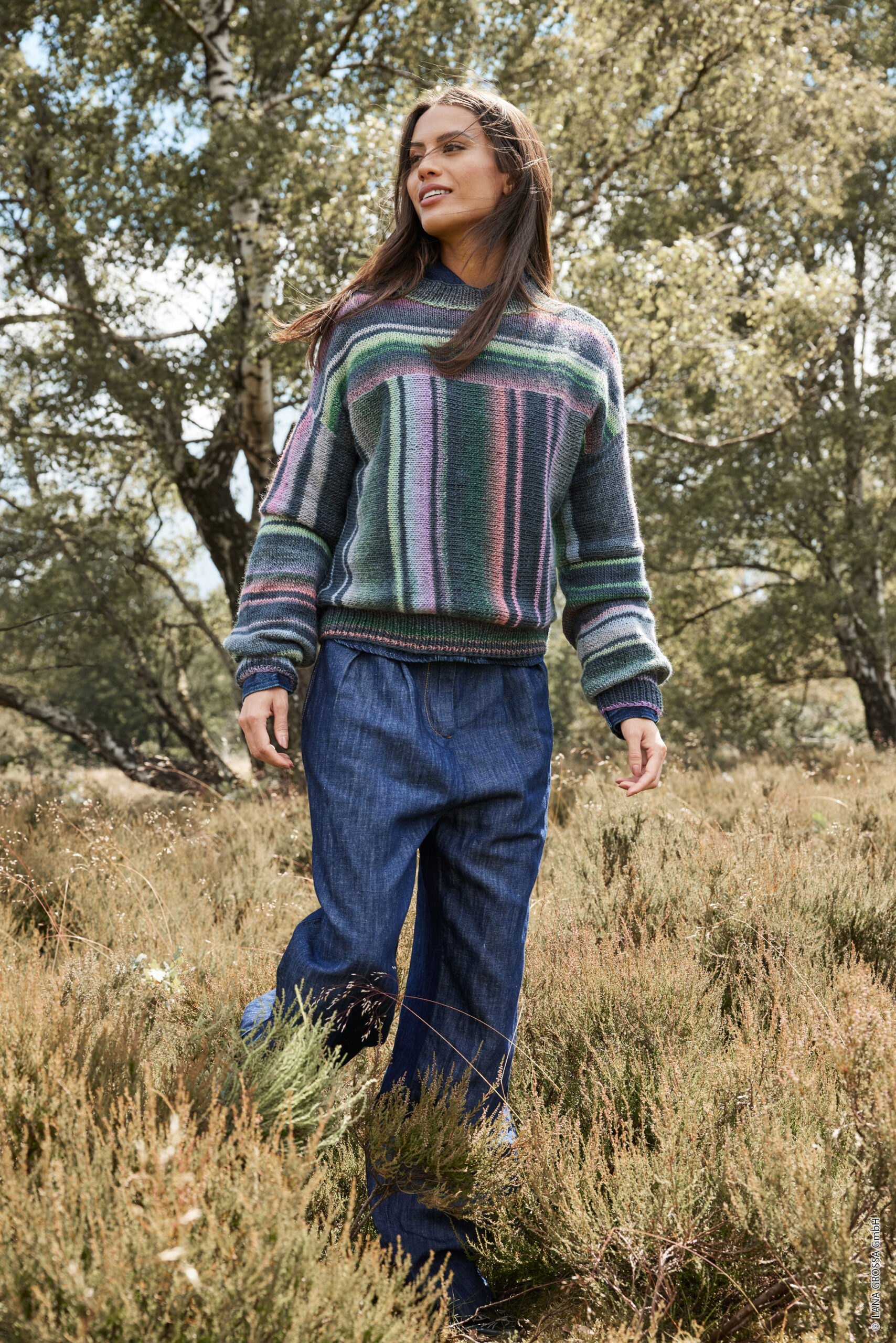 Brei een kleurrijke trui voor in de herfst/winter, gemaakt van het Lana Grossa garen Gomitolo Magico. Het patroon is te vinden in het magazine Gomitolo nr. 14.